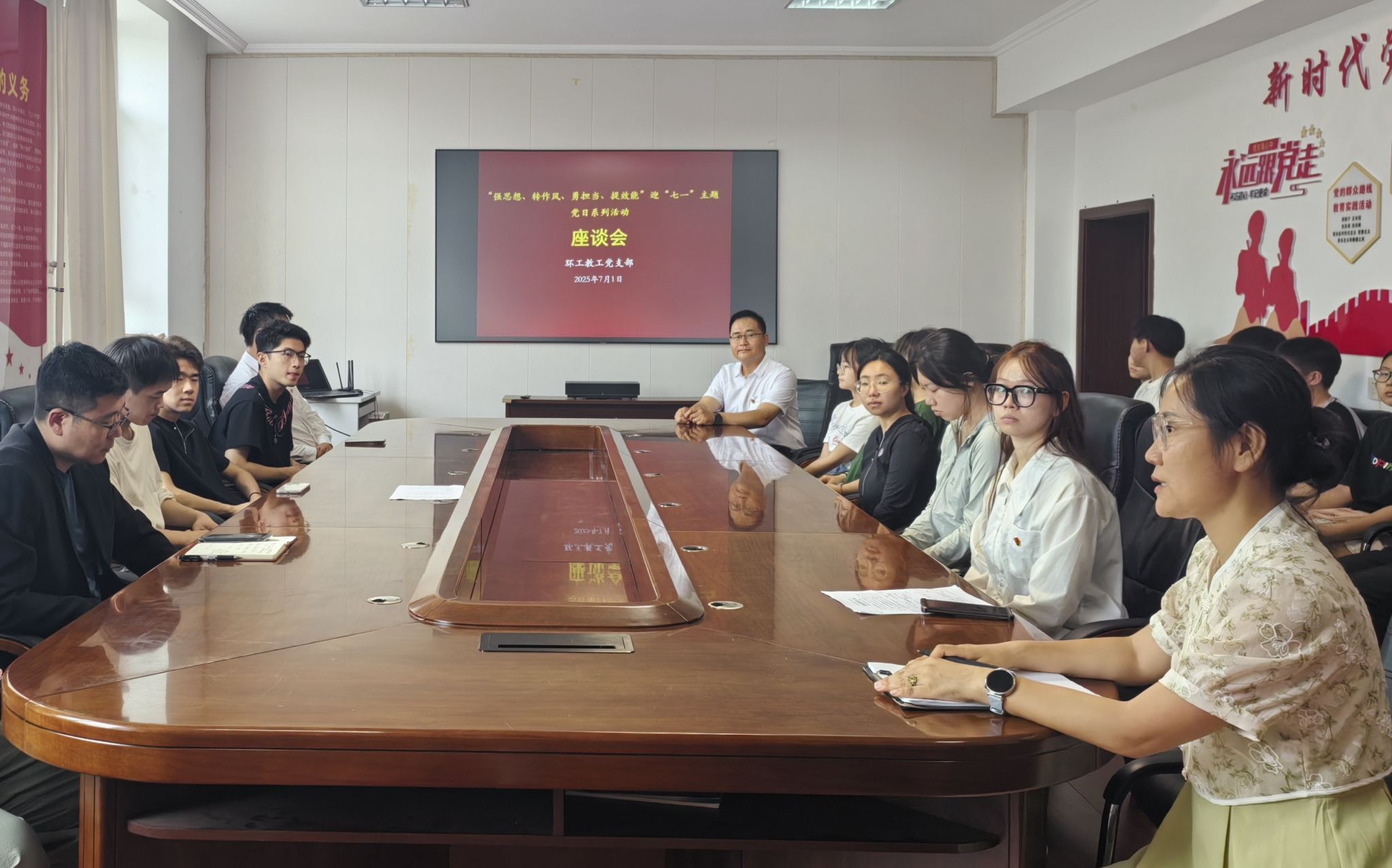 石油化工学院、资源与环境工程学院、机电工程学院、信息与控制工程学院、经济管理学院、外国语学院、理学院、机关、图书馆、工程训练中心、信息中心、分析测试中心、离退休工作处等多个师生党支部重温入党誓词、观看红色电影、共唱红色歌曲,引导激励党员师生永葆初心本色,勇担时代使命。